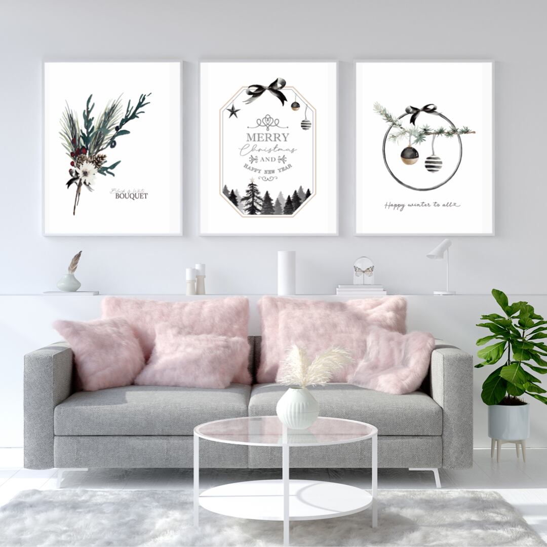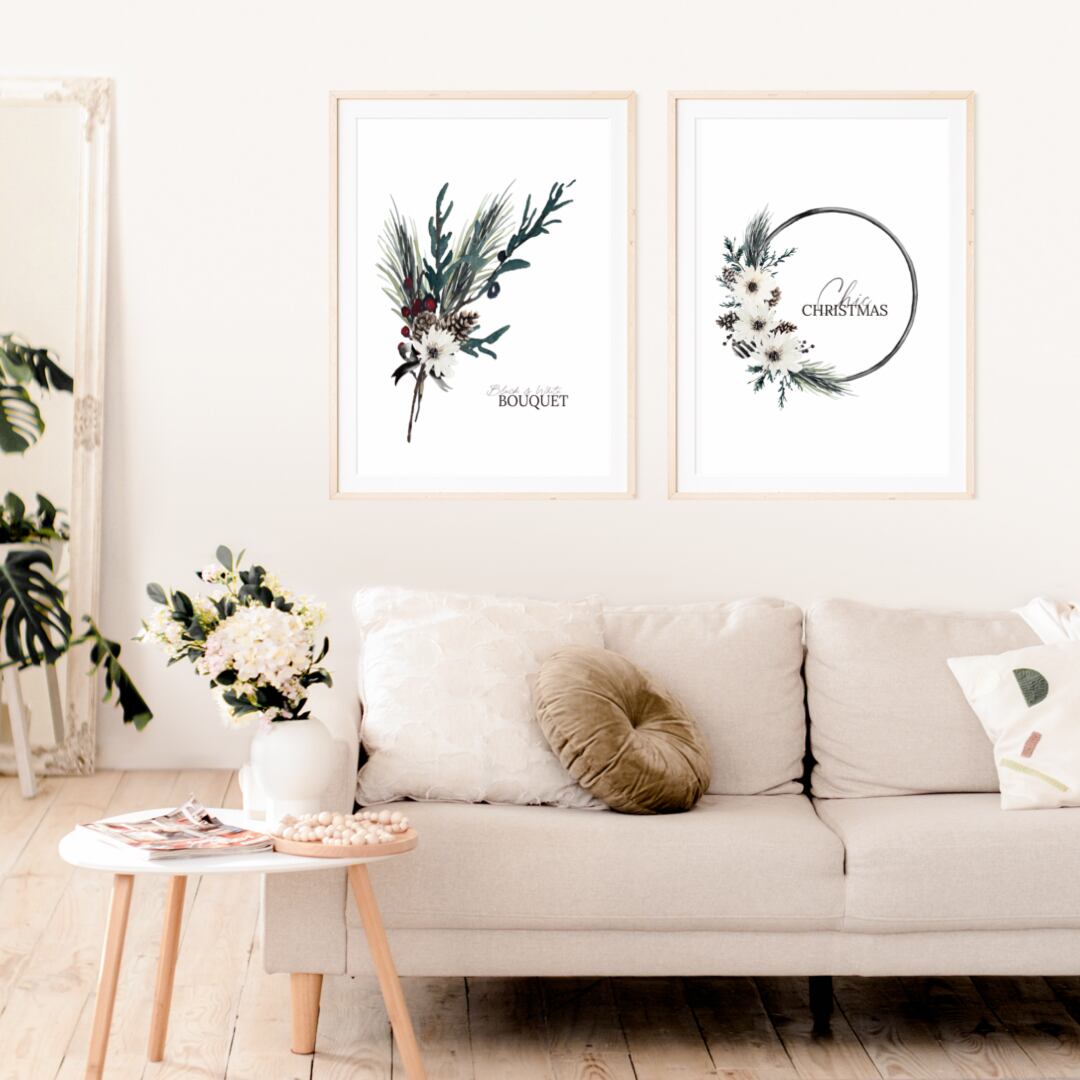 ポスター モノトーンのガーベラブーケのポスター クリスマス/ i0330