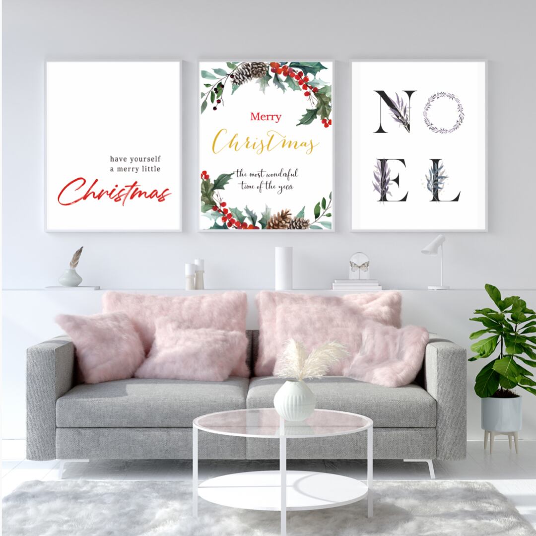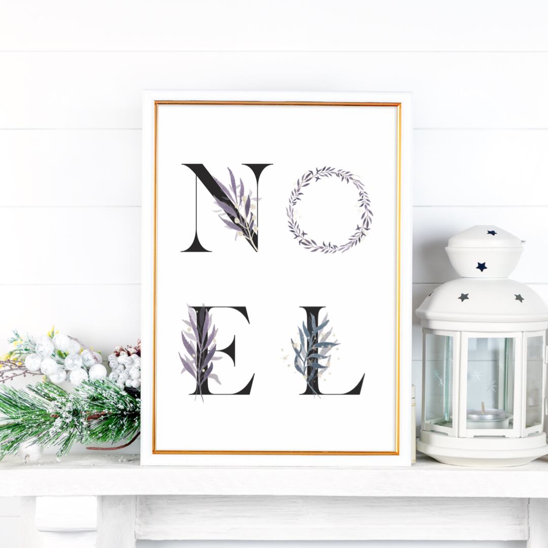 クリスマスの植物ポスターシリーズから、NOELのポスターです。植物で装飾された文字と、Oの部分は葉のリースになっているところがポイントです。