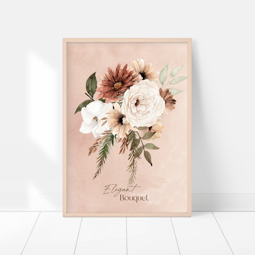 白とブラウンのブーケポスター / i0369 / インテリアポスター