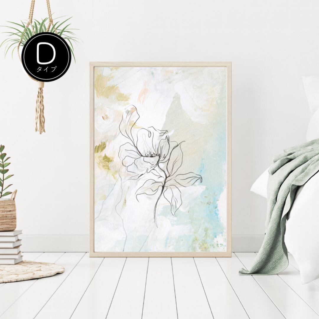 今回ご紹介するのは、白を基調にグリーンや淡いピンク、水色の筆のタッチを重ねた上に、花や葉などのボタニカルな絵をあしらった、とても春らしい爽やかさのあるポスターです。