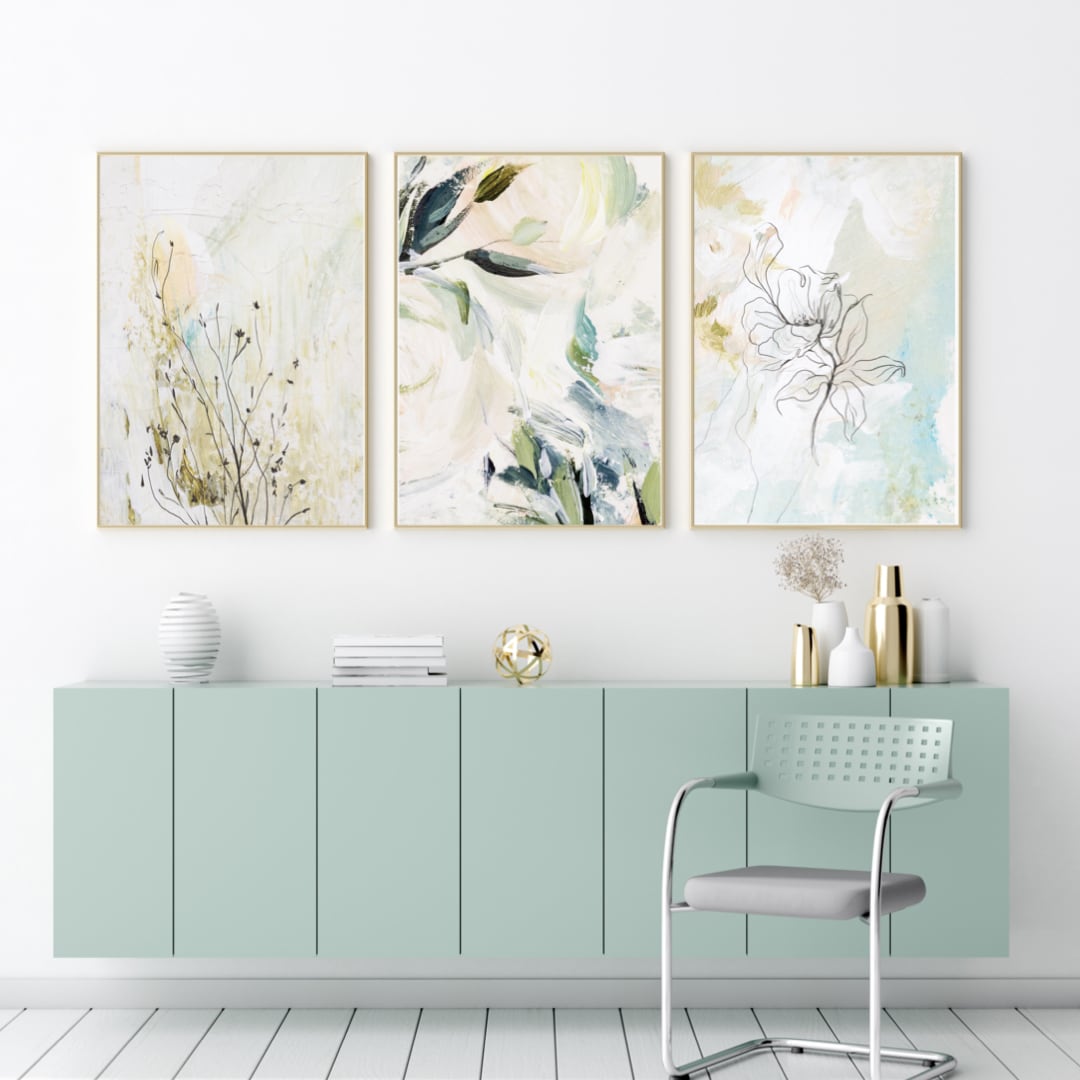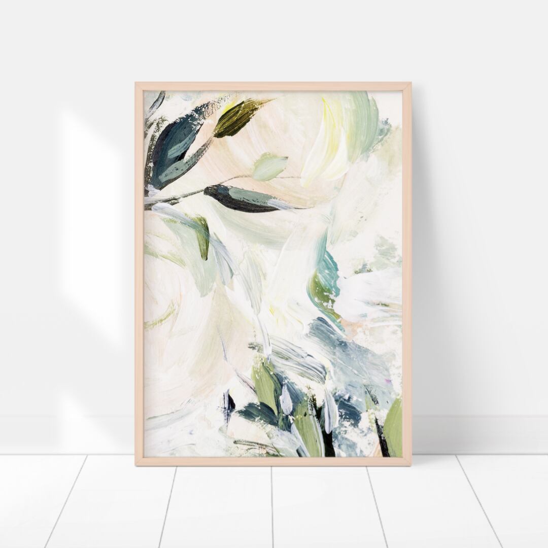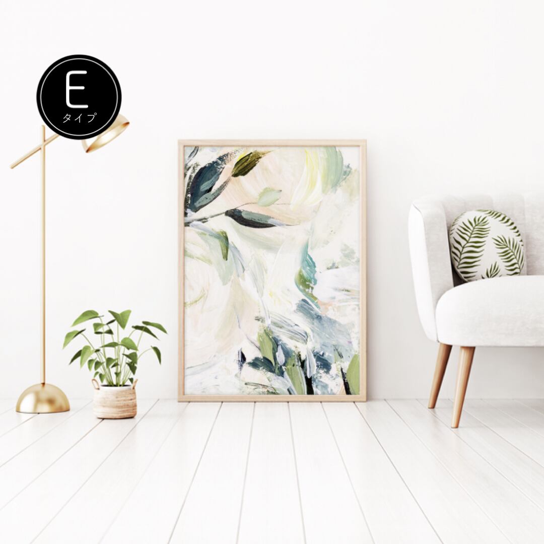 今回ご紹介するのは、白を基調にグリーンや淡いピンク、水色の筆のタッチを重ねた上に、花や葉などのボタニカルな絵をあしらった、とても春らしい爽やかさのあるポスターです。