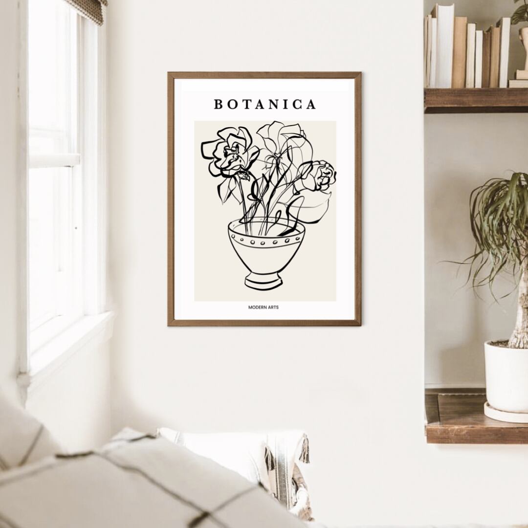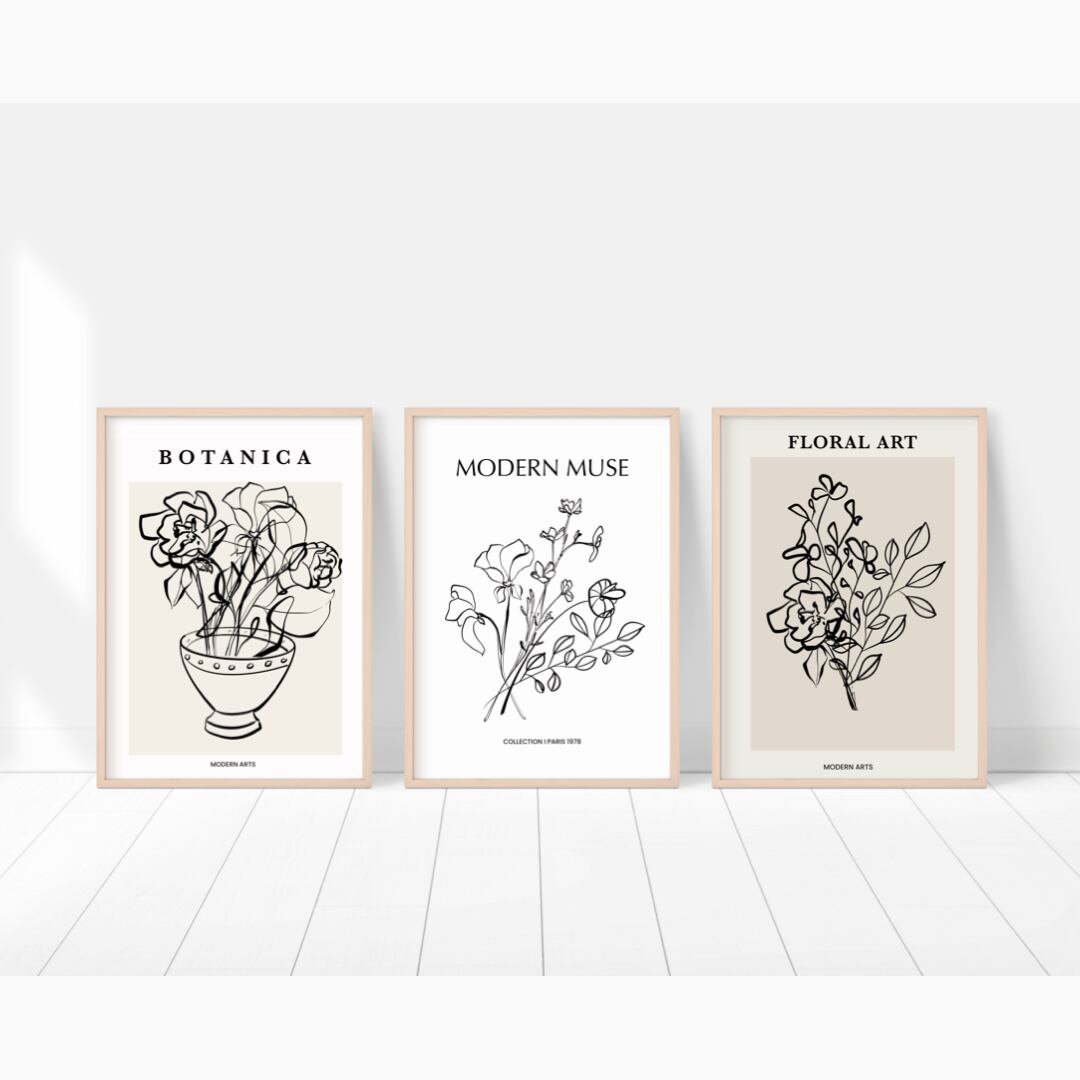 今回ご紹介するのは、スケッチブックに描かれたような、ラフな花の絵です。隣り合う花同士が緩やかに重なり、美しい造形を生み出します。モダンでシンプルなインテリアが好みの方におすすめです。