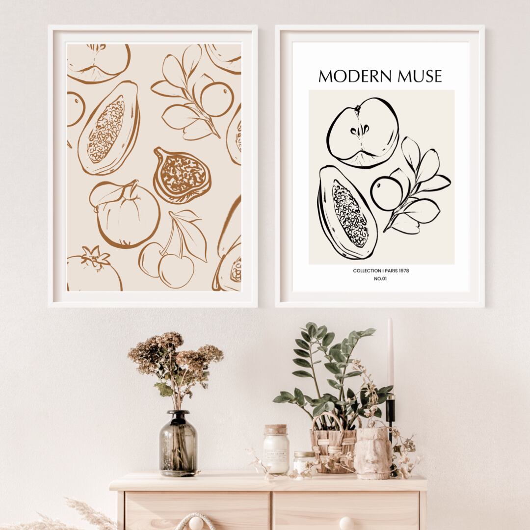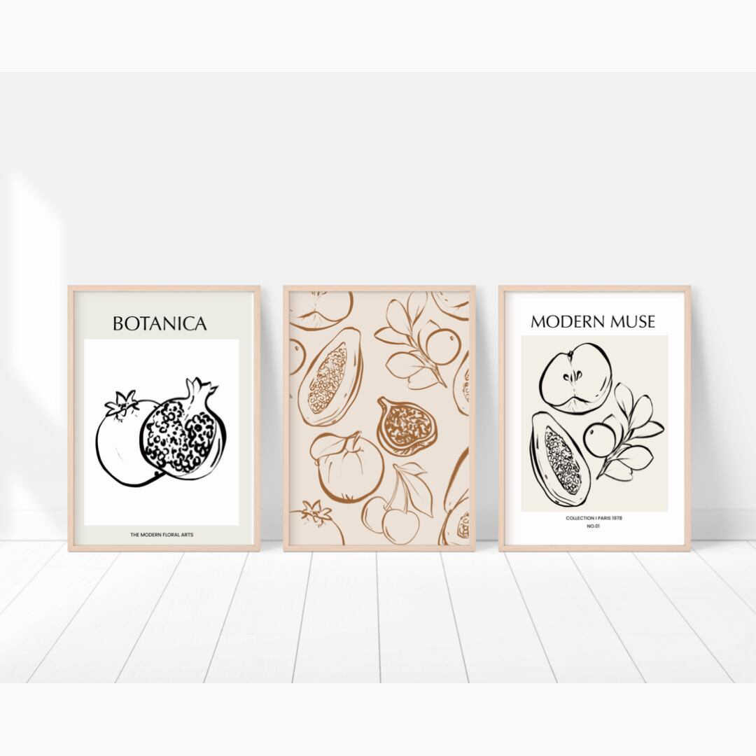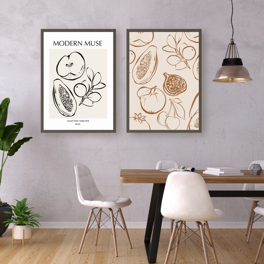 今回ご紹介するのは、スケッチブックに描かれたような、ラフなフルーツの絵です。リンゴ、ざくろ、パパイヤ、レモンなどを美しい曲線でデッサンされた絵は、ナチュラルでモダンな印象を与えてくれます。