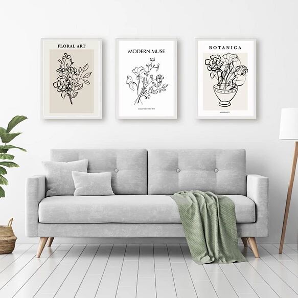 今回ご紹介するのは、スケッチブックに描かれたような、ラフな花の絵です。隣り合う花同士が緩やかに重なり、美しい造形を生み出します。モダンでシンプルなインテリアが好みの方におすすめです。