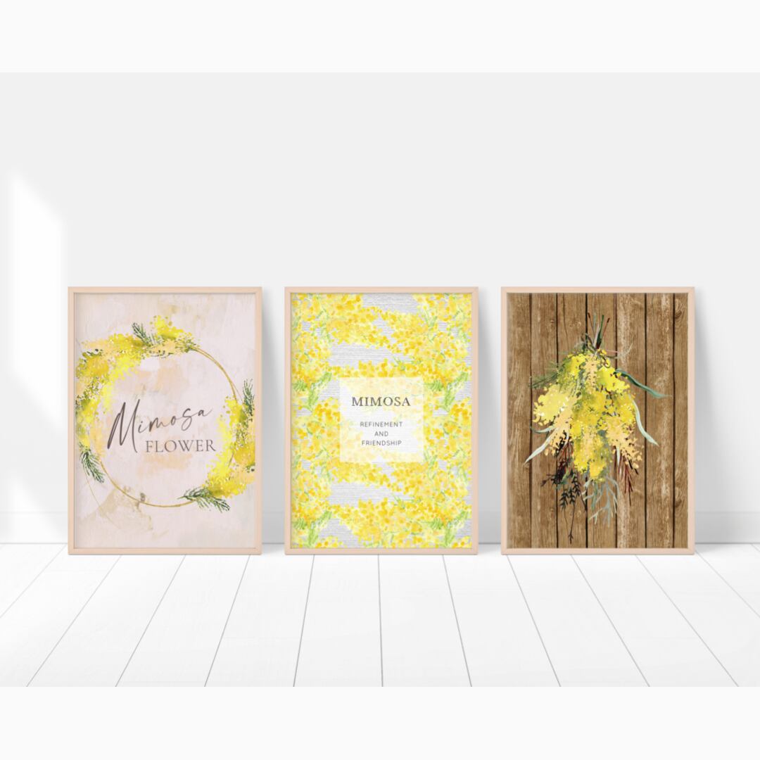 ミモザをモチーフにして、リースやスワッグなど、さまざまなタイプのポスターを作ってみました。
