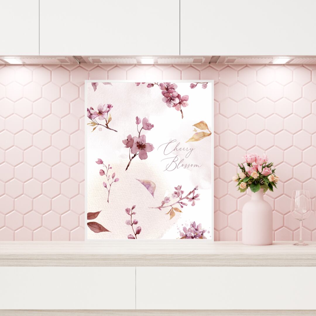 ボタニカル調の桜は色を淡くして、優しい印象に仕上げました。背景が、淡いピンク、グリーン、ブルーの3色を使用しています。