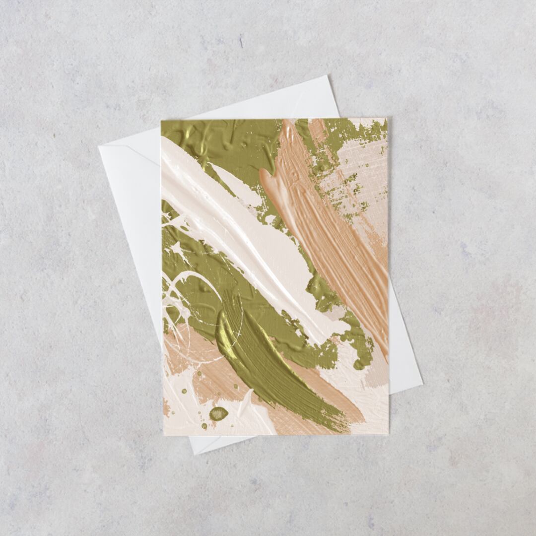 淡いピンクとグリーンでペイントされた抽象画です。全面に絵柄があるタイプと、キャンバス地を背景に小さめに抽象画が描かれているタイプがあります。春の草花を思わせる明るい色合いです。