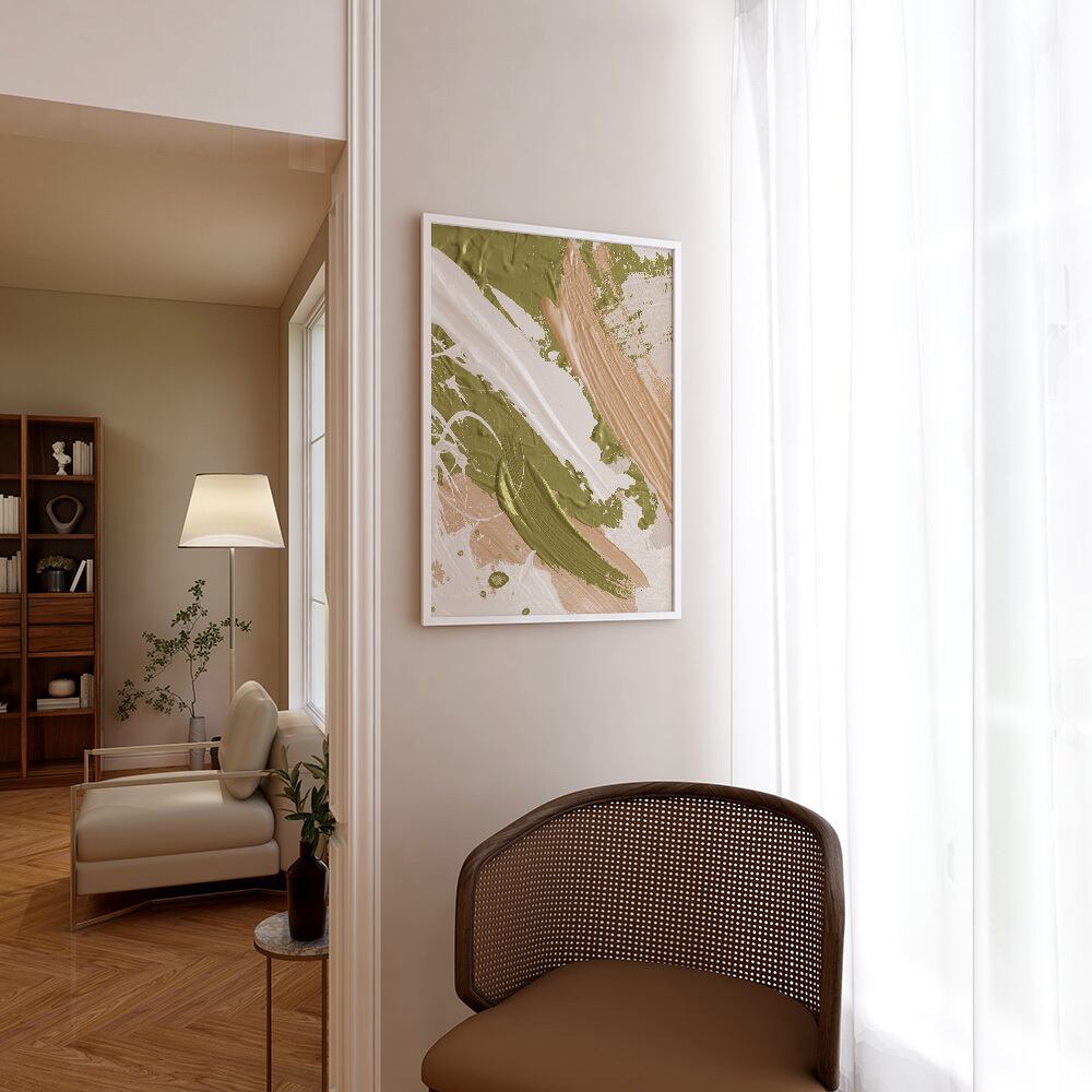 ポスター ペイントの抽象画 / i0587 / ピンクと緑 モダン インテリアポスター