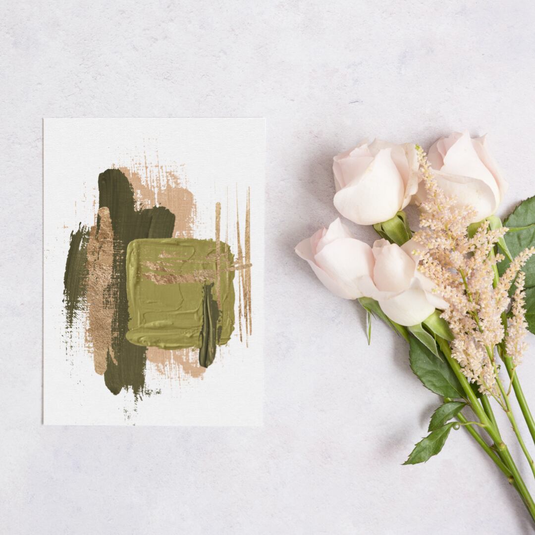 淡いピンクとグリーンでペイントされた抽象画です。全面に絵柄があるタイプと、キャンバス地を背景に小さめに抽象画が描かれているタイプがあります。春の草花を思わせる明るい色合いです。