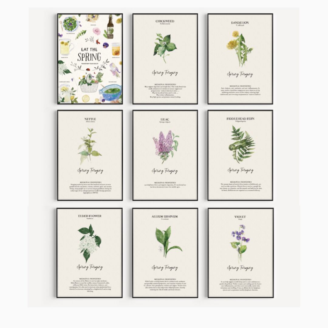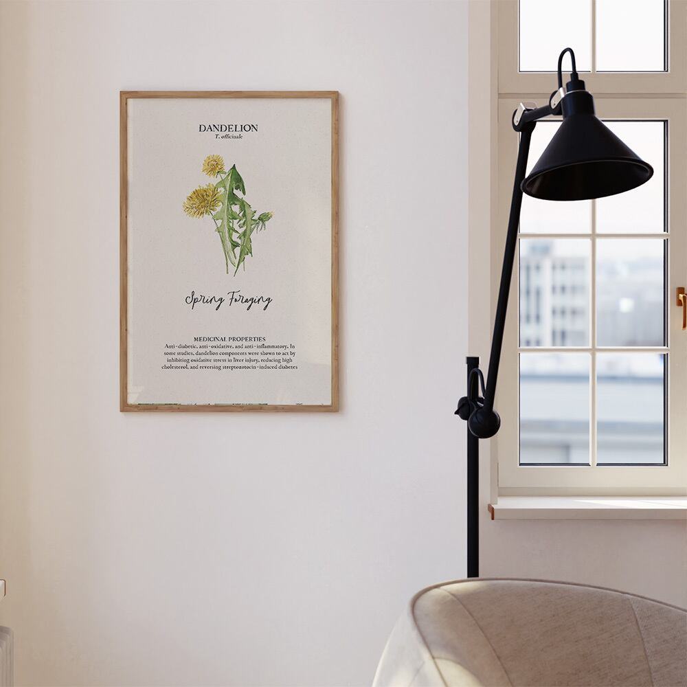 スミレやタンポポ、ライラックやエルダーフラワーなどの春の草花やハーブのボタニカルポスターです。素朴な絵のタッチと英文が、キッチンをおしゃれに彩ります。同じシリーズの植物のレシピポスターとの相性も良いので、合わせて飾るのもおすすめです。