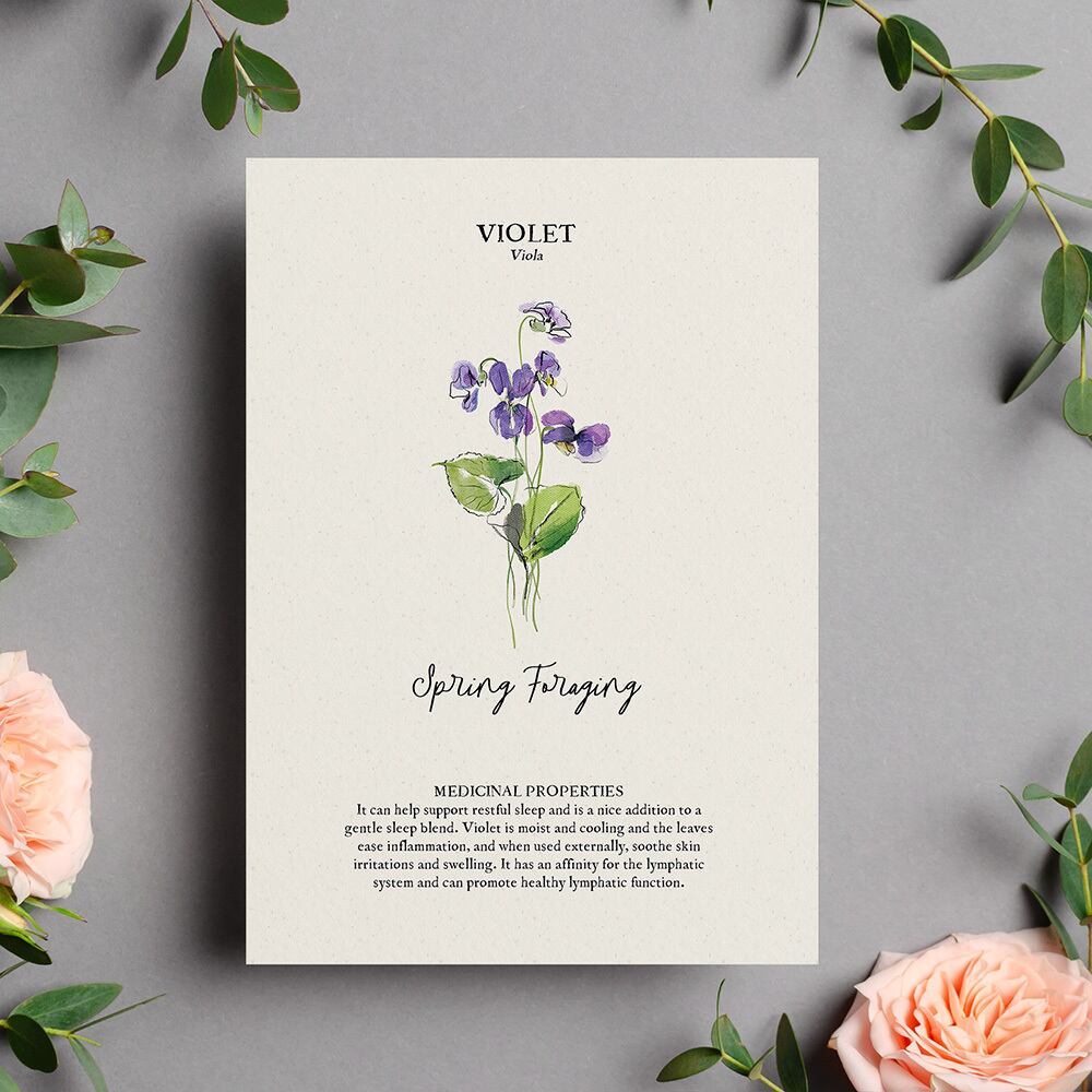 スミレやタンポポ、ライラックやエルダーフラワーなどの春の草花やハーブのボタニカルポスターです。素朴な絵のタッチと英文が、キッチンをおしゃれに彩ります。同じシリーズの植物のレシピポスターとの相性も良いので、合わせて飾るのもおすすめです。