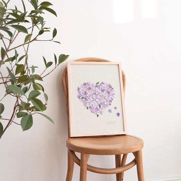 初夏のあじさいのポスターです。青と紫の紫陽花をモチーフにしました。背景は真っ白ではなく、でこぼこした紙やキャンバス地のような素材を使用して、ナチュラル感のある優しい雰囲気に仕上げました。小さい花を散りばめた総柄タイプもおすすめです。