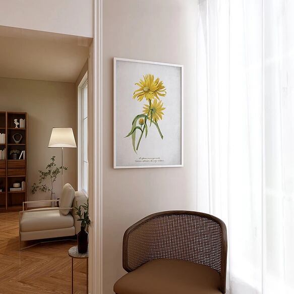 ポスター 夏のひまわり / i0695 / ヴィンテージ風のヒマワリの花 ボタニカル インテリアポスター