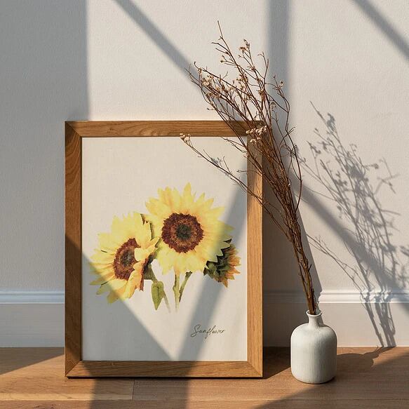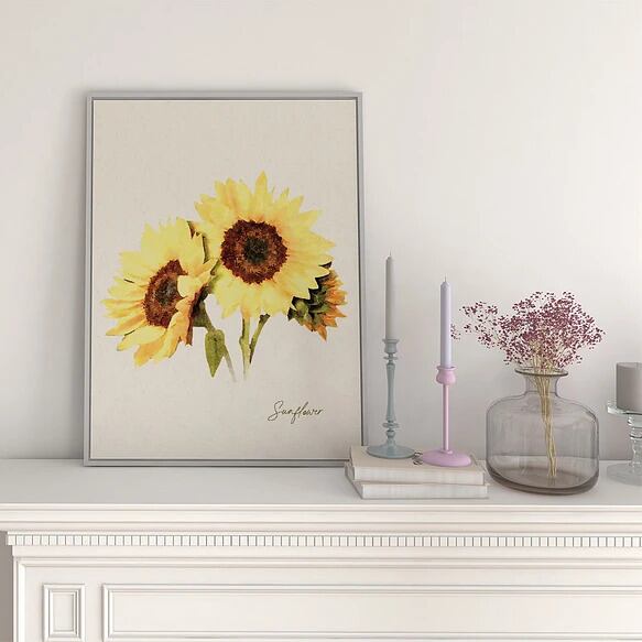 夏の向日葵のポスターです。シンプルにひまわりを際立たせてみました。ヴィンテージ風のものや、総柄タイプなど、お好みでお選びください♪
