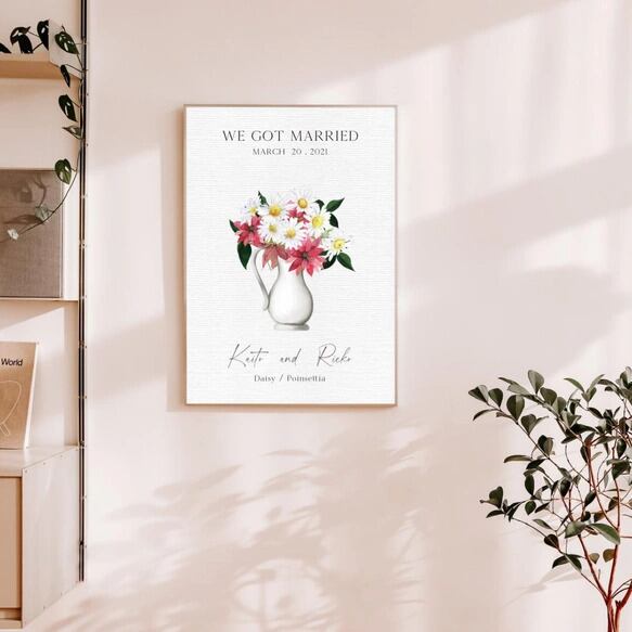 12か月の誕生花のポスター 2人用 名入れ 結婚祝いや誕生日のプレゼントに ウェルカムポスター ファミリーポスター