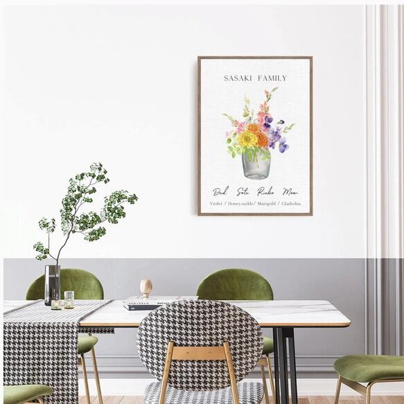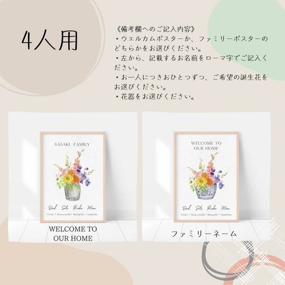 12か月の誕生花のポスター 3人〜6人用 名入れ 母の日や誕生日のプレゼントに ウェルカムポスター ファミリーポスター