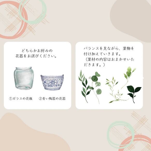 水彩のお花と、花器もお選びいただけるようにデザインいたしました。