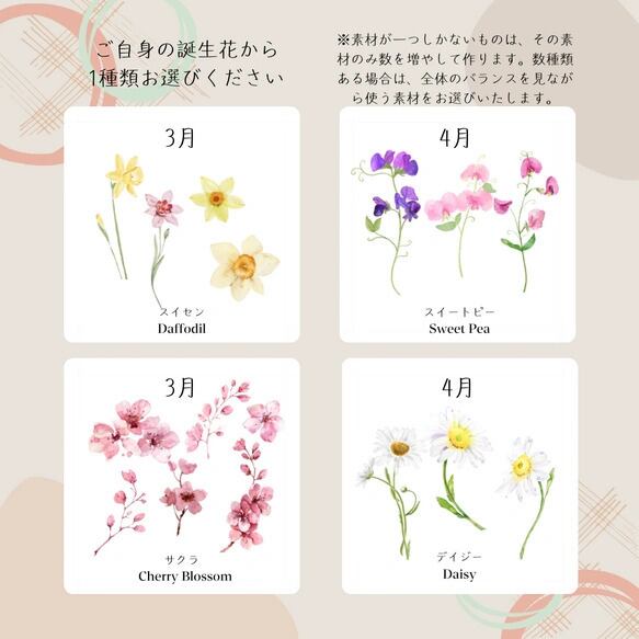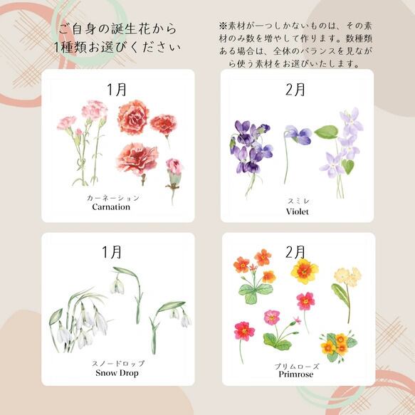 毎月2つずつ誕生花がありますので、ご希望のものをお選びいただけます。