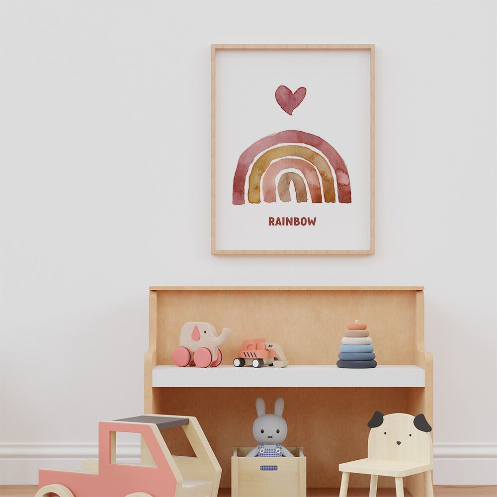 梅雨の季節に合わせて、傘や雨、虹のモチーフのポスターをご用意しました。赤、青、緑に黄色、とてもカラフルで元気が出るイラストです。子供部屋にもいかがでしょうか。