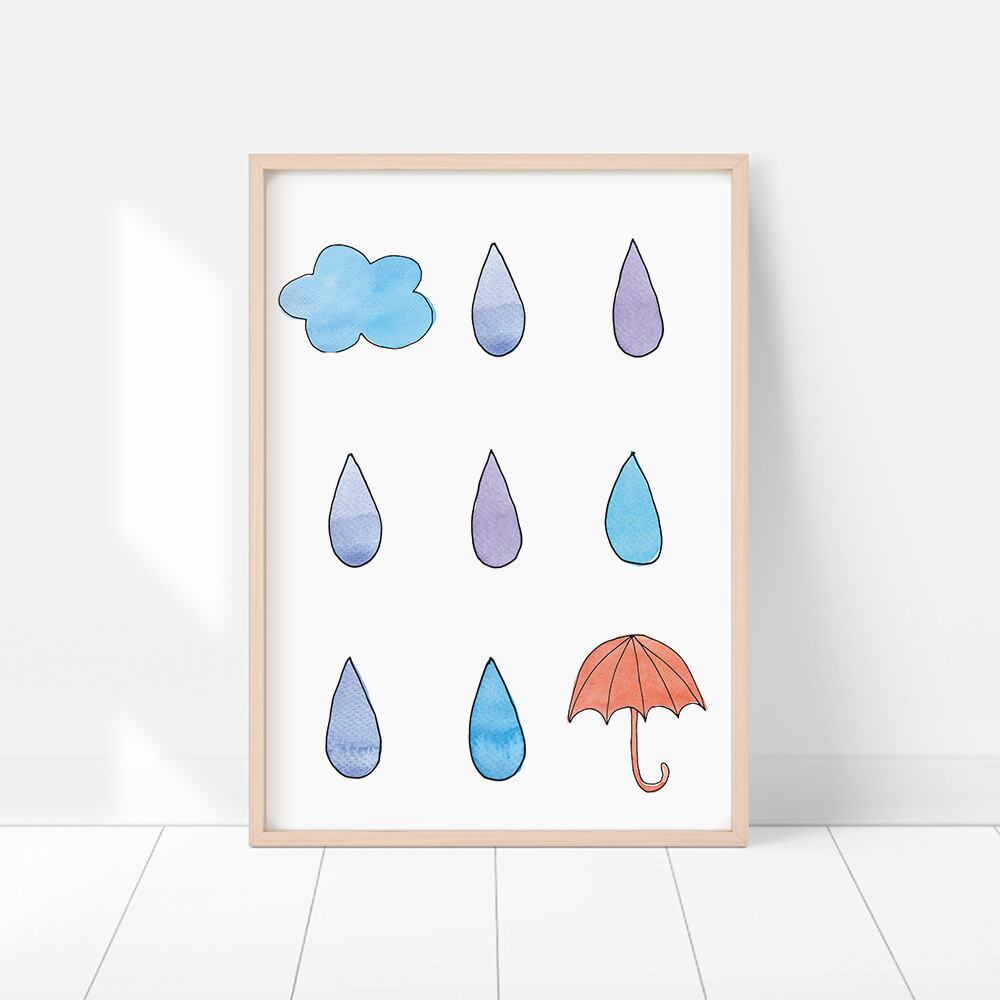 梅雨の季節に合わせて、傘や雨、虹のモチーフのポスターをご用意しました。赤、青、緑に黄色、とてもカラフルで元気が出るイラストです。子供部屋にもいかがでしょうか。