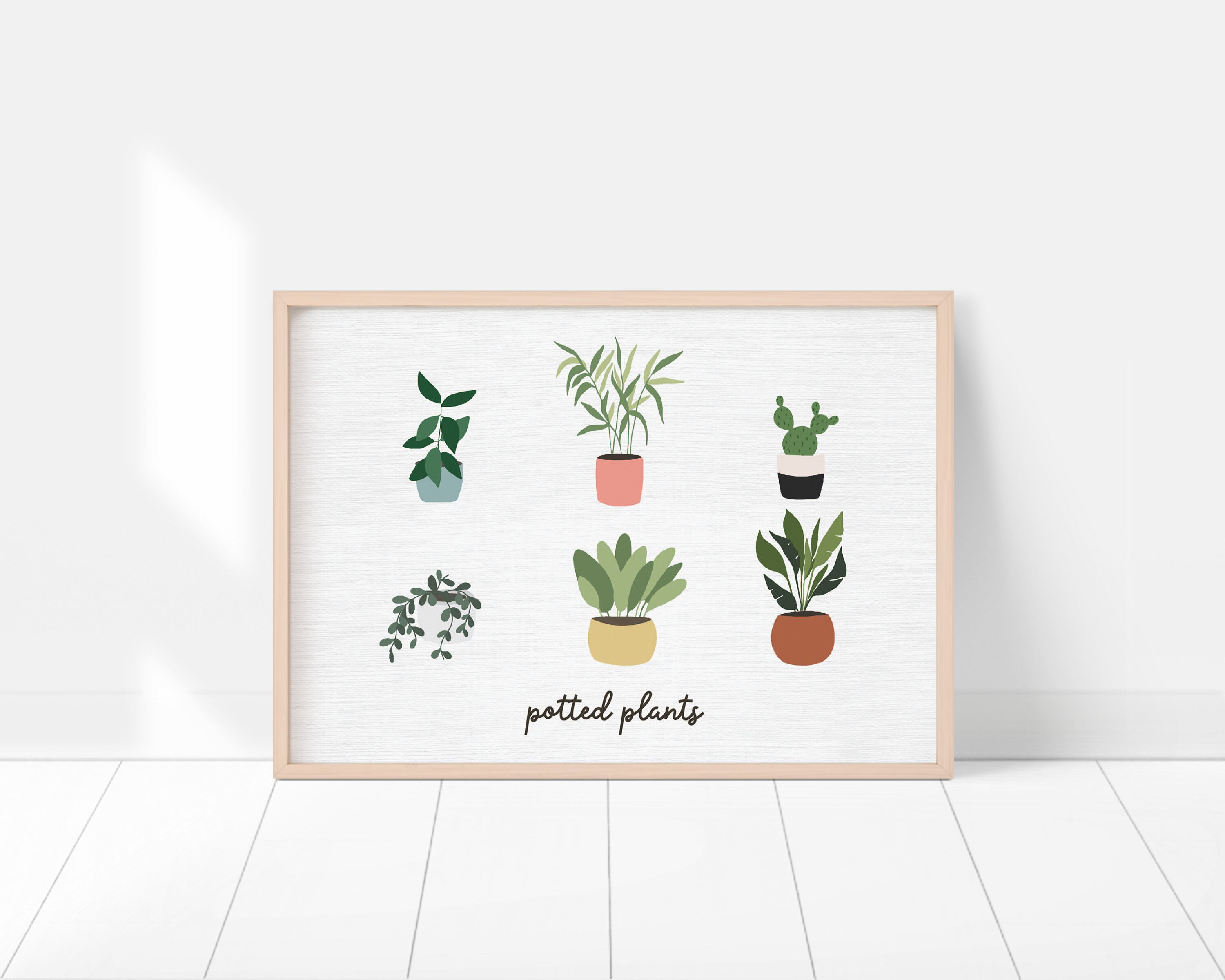 夏のインテリアグリーンのポスターです。さまざまなタイプの葉がポットに入っているデザインで、涼しげな雰囲気になります。