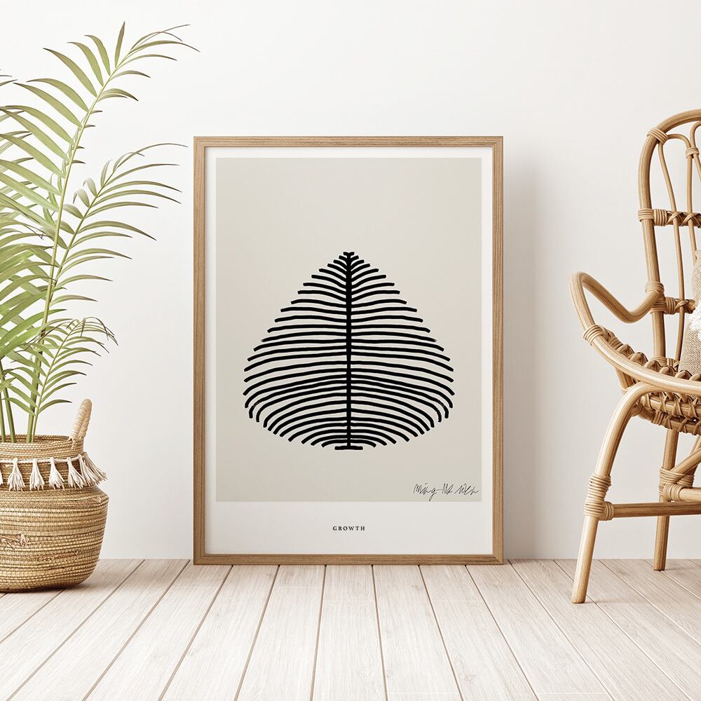 夏にぴったりな、カラフルな抽象画のポスターです。ブルー、黄緑、ピンク、赤みが混ざったものなど、ポップな水彩の四角形が並んでいるデザインです。また、植物を抽象画にしたものも、組み合わせて飾るとモダンな雰囲気になります。