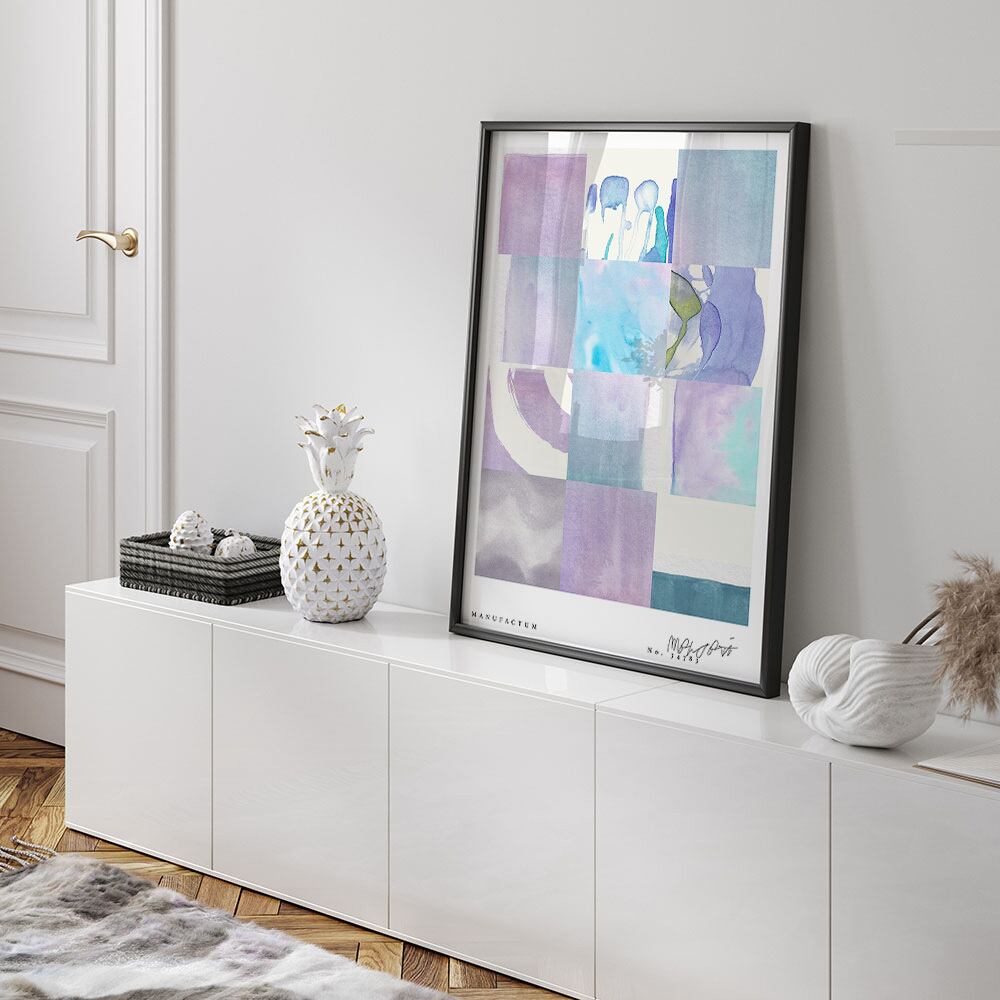 夏にぴったりな、カラフルな抽象画のポスターです。ブルー、黄緑、ピンク、赤みが混ざったものなど、ポップな水彩の四角形が並んでいるデザインです。また、植物を抽象画にしたものも、組み合わせて飾るとモダンな雰囲気になります。
