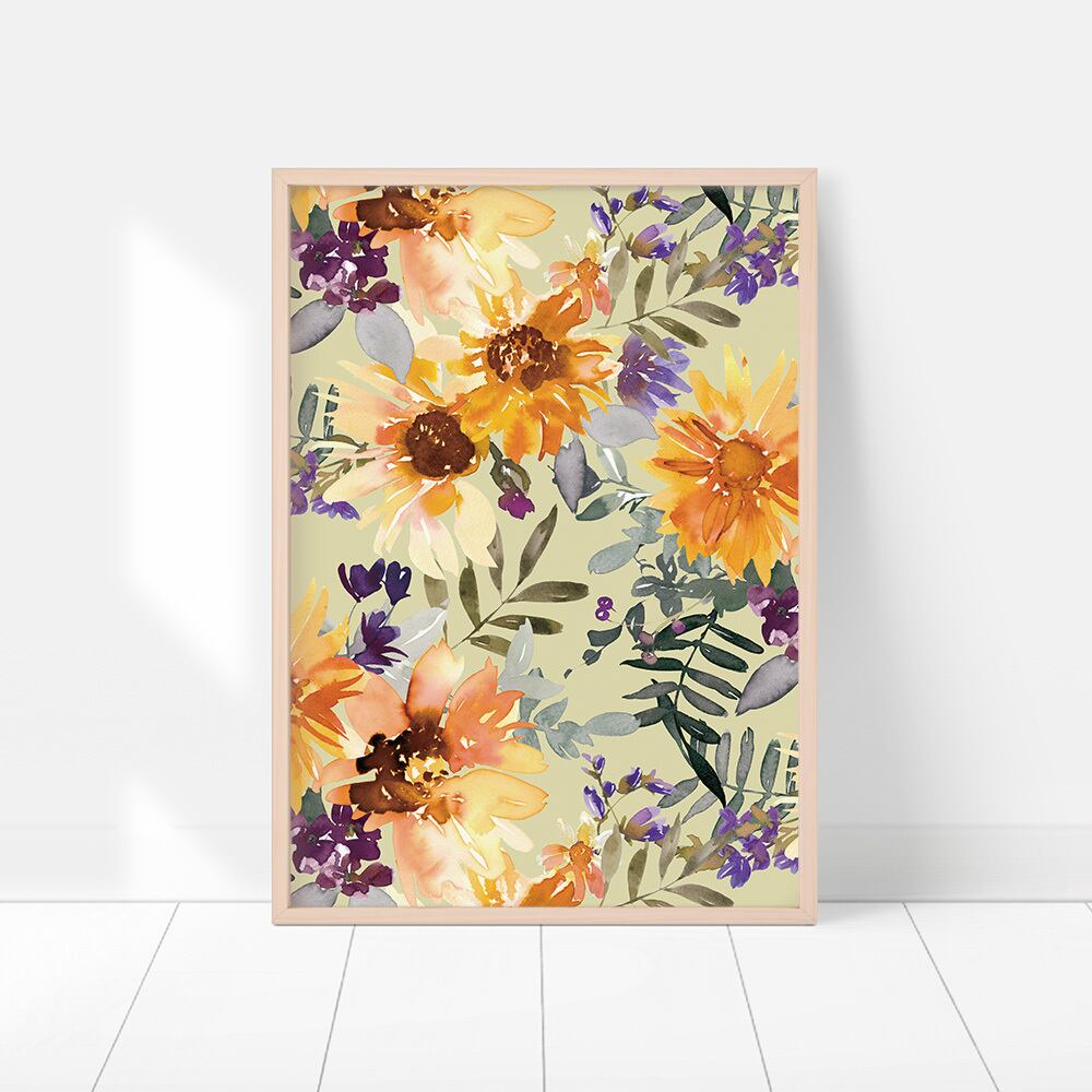 ポスター 夏のひまわり / i0371 / ヴィンテージ風のヒマワリの花 ボタニカル インテリアポスター