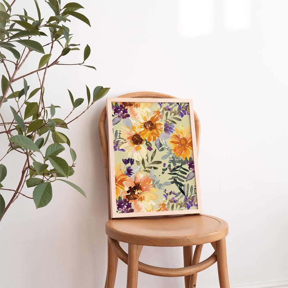 夏の向日葵のポスターです。シンプルにひまわりを際立たせてみました。ヴィンテージ風のものや、総柄タイプなど、お好みでお選びください♪