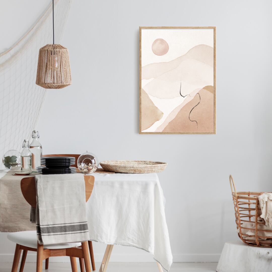 ベージュ・ブラウンを基調とした抽象風景画シリーズです。インテリアに落ち着きを与えてくれます。同じベージュ調の抽象画ポスターや、ベージュ調の英字ポスターとの相性が良いので、ぜひ合わせて飾ってみてください。