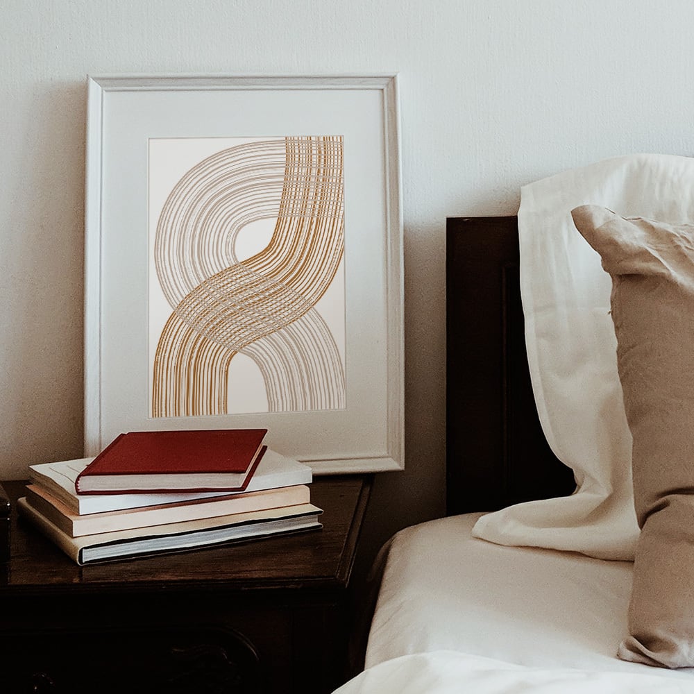 ブラウンやベージュ、黒を基調とした抽象的な形のポスターです。葉っぱや線のモチーフなども取り入れ、モダンな印象に仕上げました。かっこいいモダンなインテリアがお好きな方や、カフェにもぴったりです。