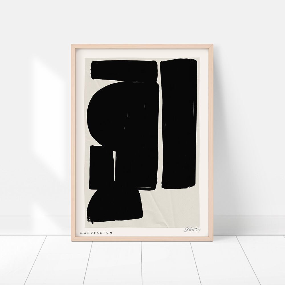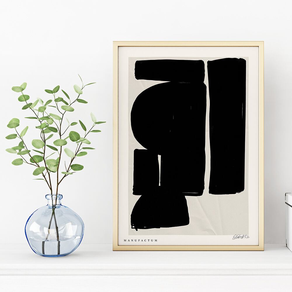 モダンな抽象画ポスターです。幾何学的な形のモチーフのもの、黒い四角をモチーフとしたもの、夏らしいカラフルな形をモチーフにしたものがあります。