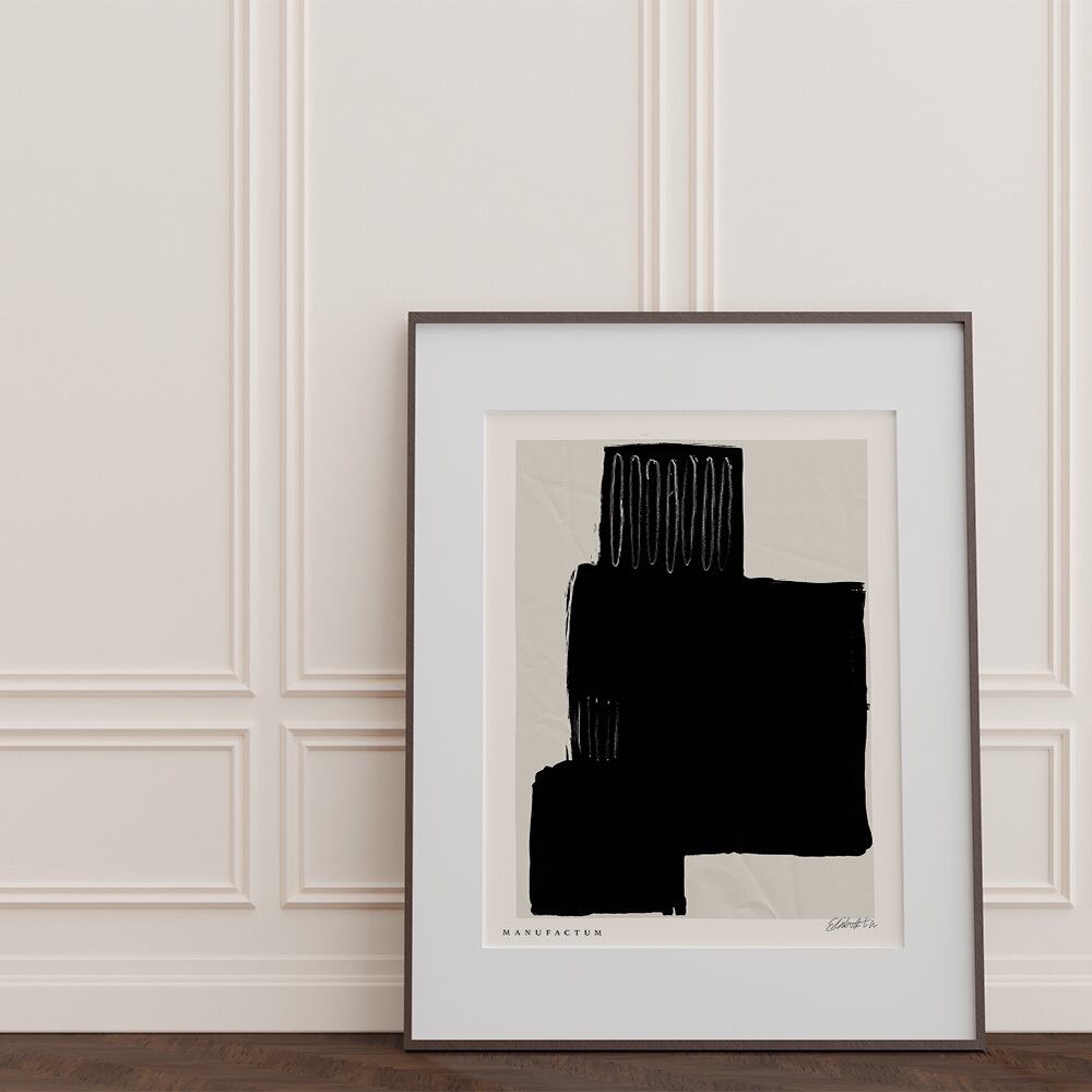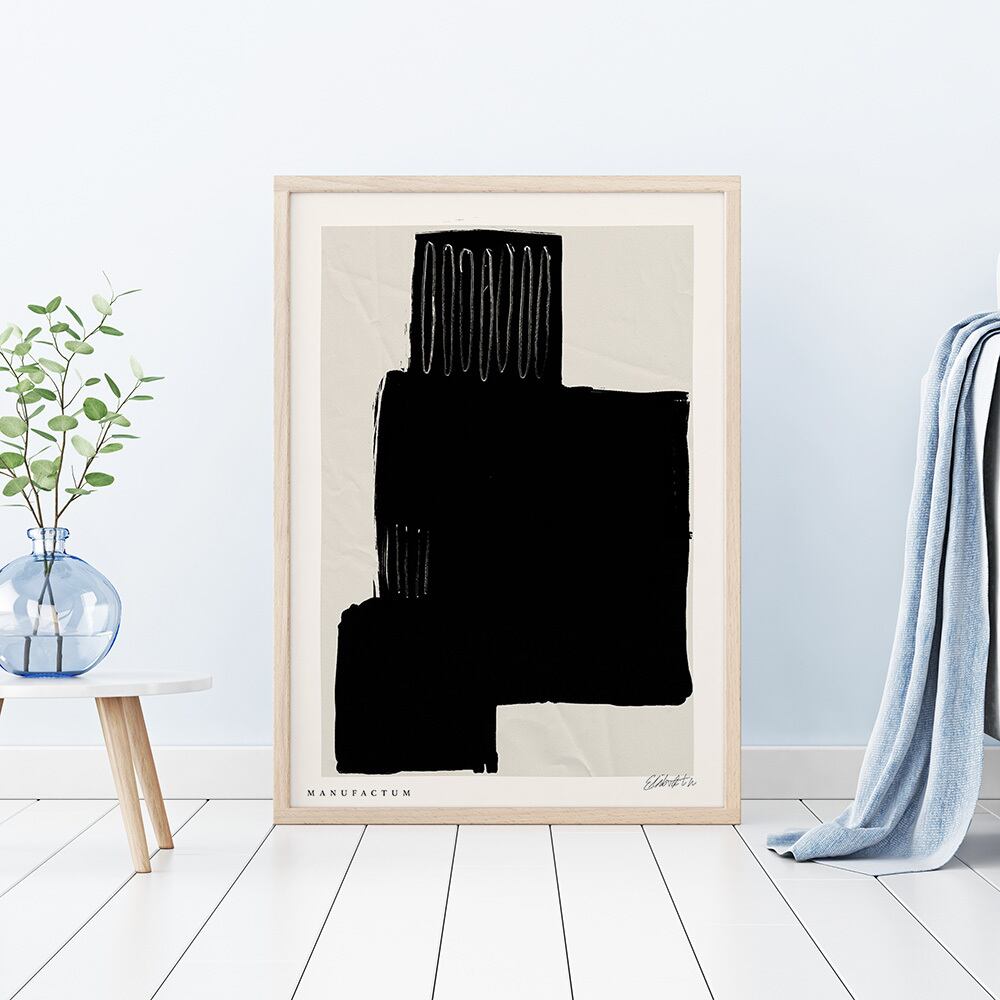 モダンな抽象画ポスターです。幾何学的な形のモチーフのもの、黒い四角をモチーフとしたもの、夏らしいカラフルな形をモチーフにしたものがあります。