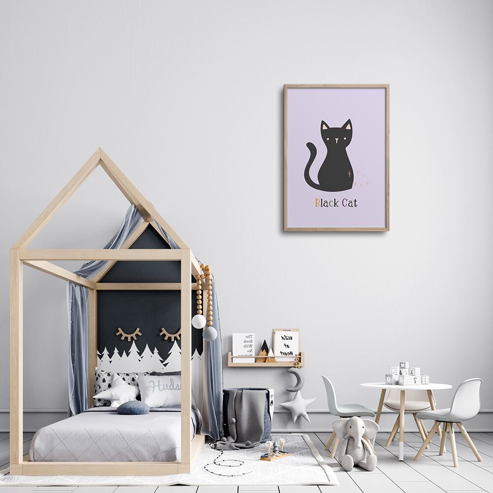 ハロウィンの子供部屋にぴったりのハロウィンシリーズポスターです。Boo!と驚かせているおばけや、カラフルなかぼちゃ、黒ネコなどキュートなキャラクターです。カラフルな英字もあります。