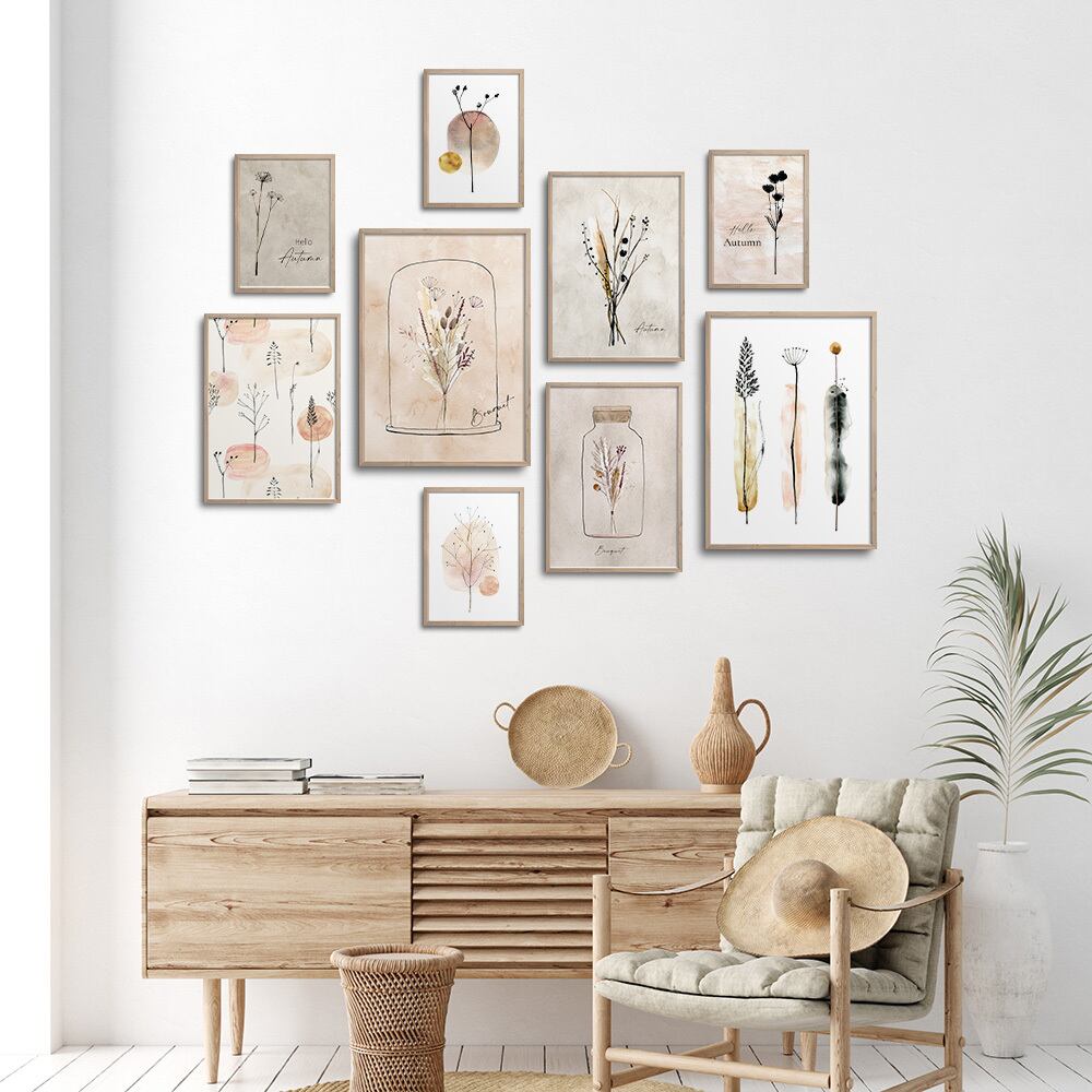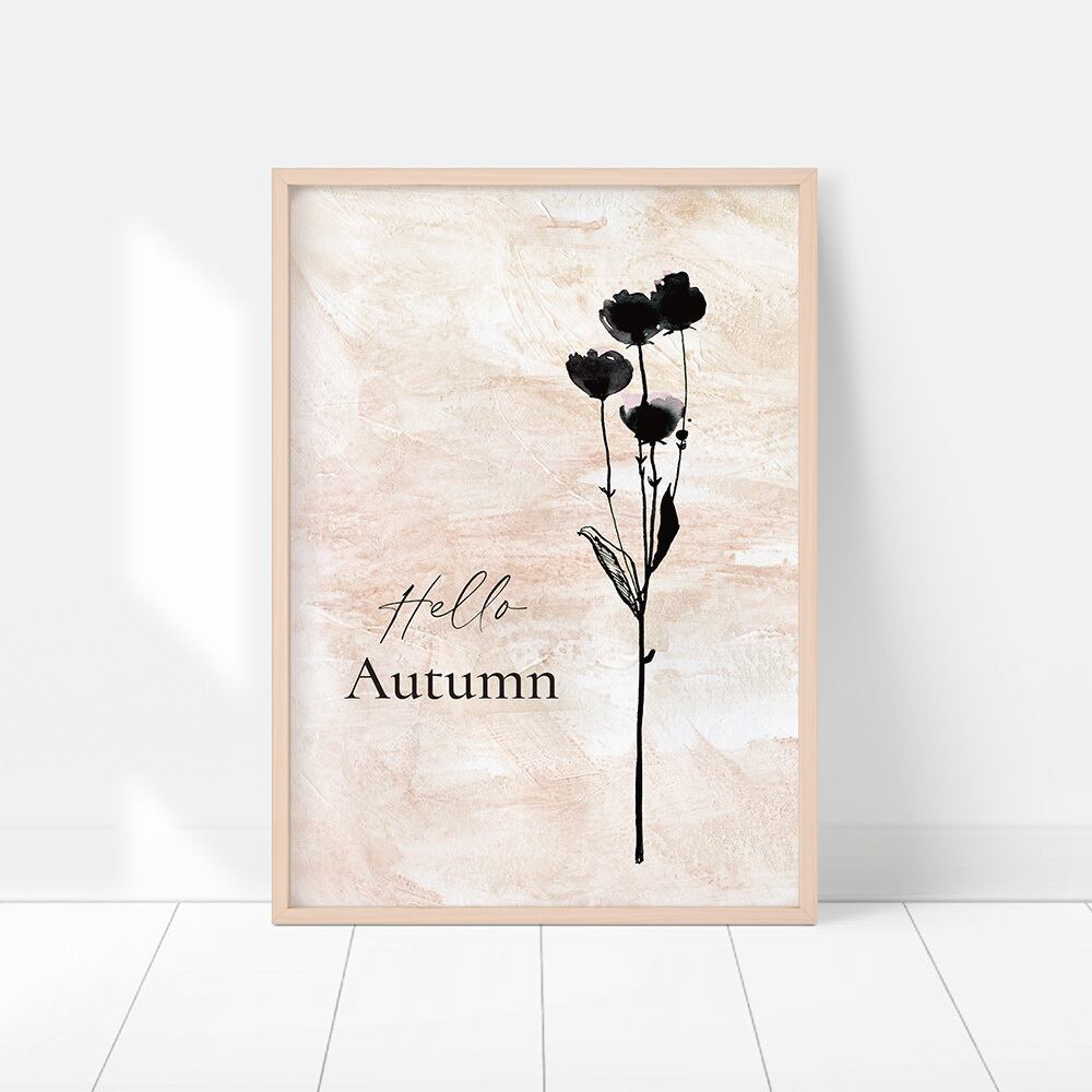 秋の草花のポスターです。立ち枯れたような草花や、花束になっているもの、瓶に飾られているものなどがあります。秋らしいベージュトーンの色味が、インテリアに落ち着きを与えてくれます。