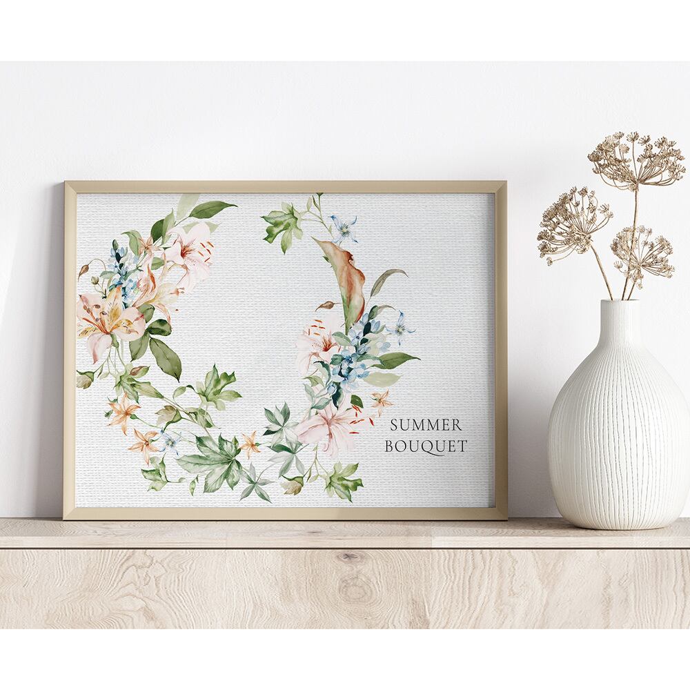 ポスター 夏のユリのリース / i0862 / 百合、カラー、ブルースターなどの花 ボタニカル インテリアポスター