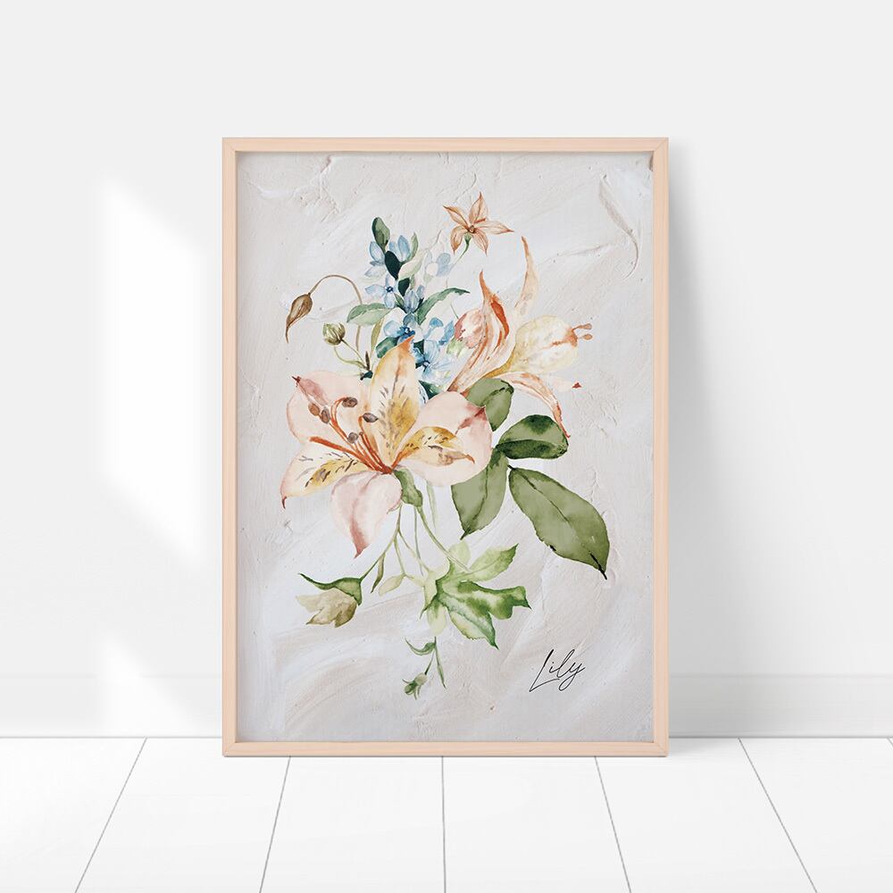 ポスター 夏のユリの花束 / i0856 / 百合、カラー、ブルースターなどの花 ボタニカル インテリアポスター