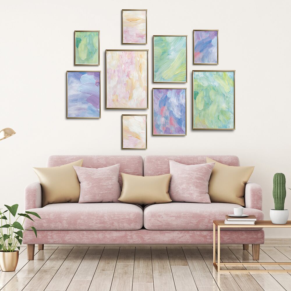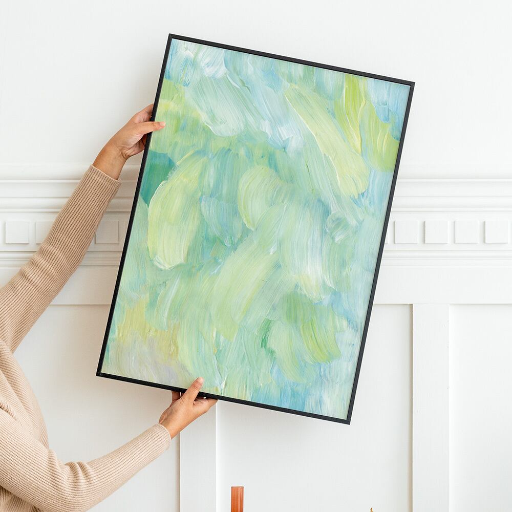 ペイント抽象画のポスターです。ピンク系、グリーン系、ブルー系があります。どれも淡い色使いで優しい印象ですので、お部屋を明るくしてくれます。