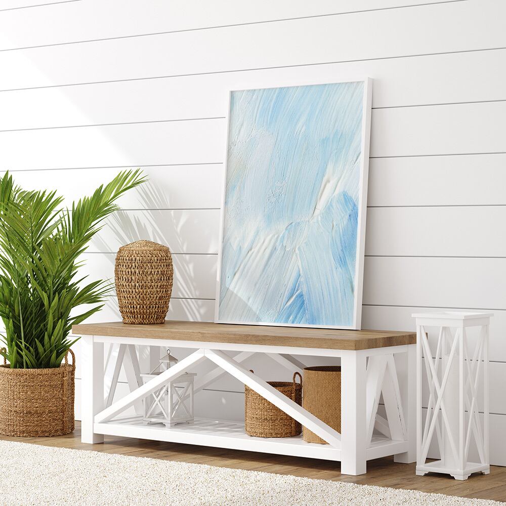 ペイント抽象画のポスターです。黄色と水色の涼しげなもの、グリーンとホワイト、オレンジ系やブルー系など、どれも淡いトーンの優しい色合いです。