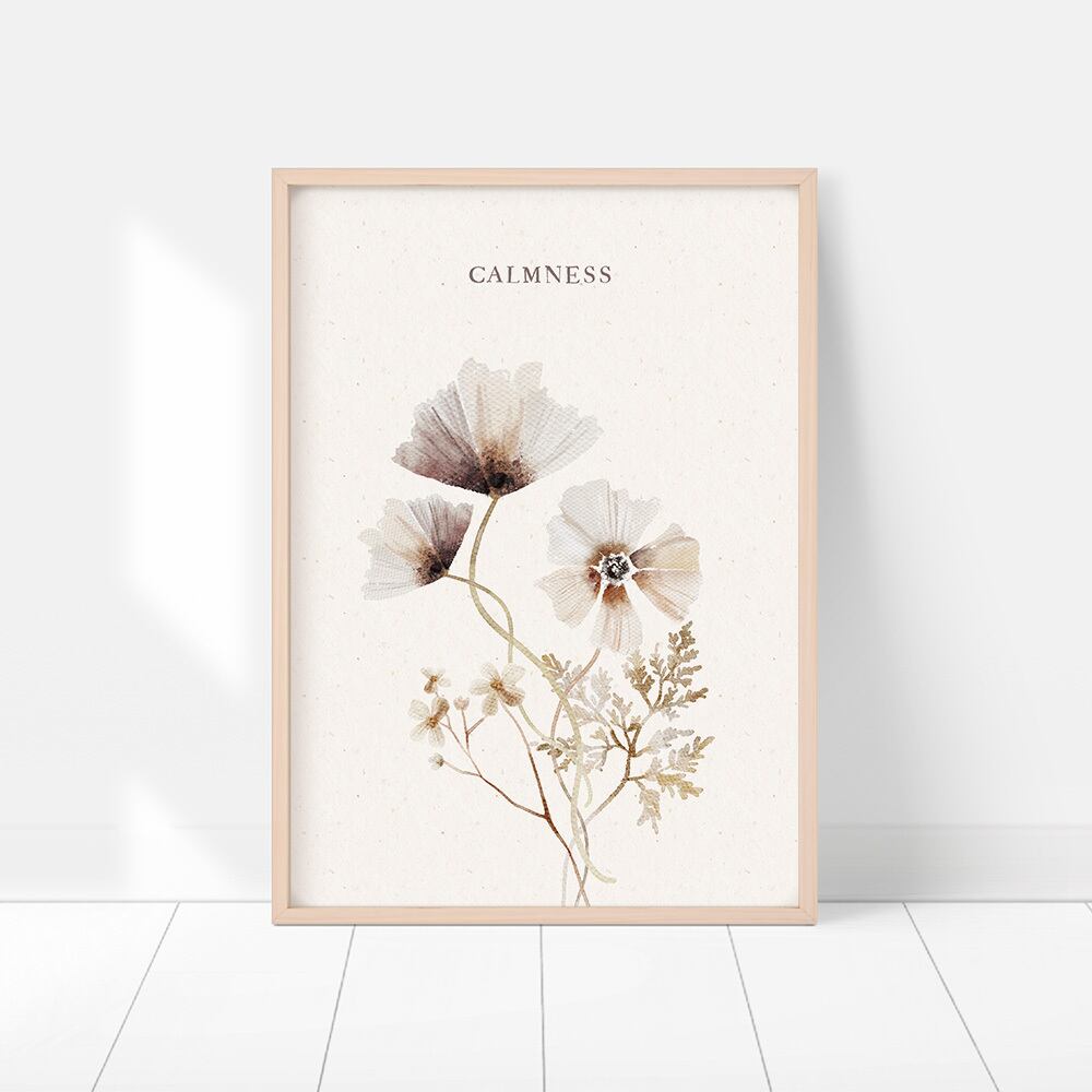 秋の花束のポスターです。ポピーやチョコレートコスモス、イチョウなど、秋の草花が描かれています。ベージュやブラウン、ボルドーの色使いで、でシックで大人っぽい雰囲気になります。