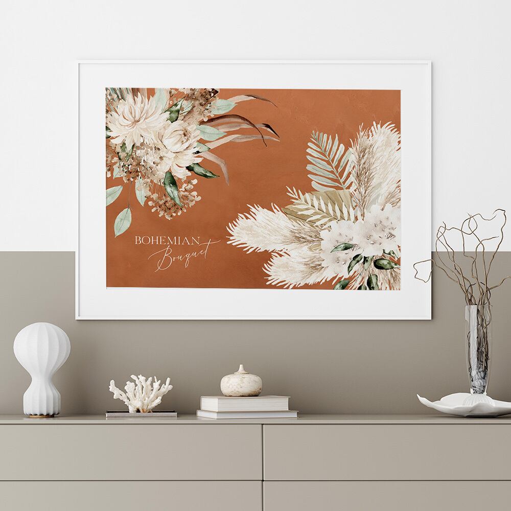 葉や花をモチーフにしたポスターです。ベージュやアイボリー、グレージュやブラウン調で、リラックスしたナチュラルな雰囲気になります。boho(ボヘミアン)スタイルのインテリアにおすすめです。