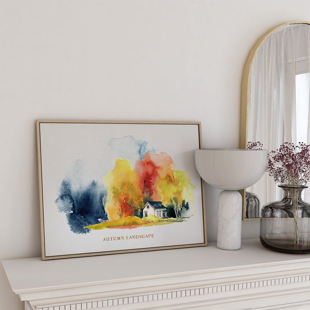 鮮やかな赤や黄色に彩られた秋の風景のポスターです。秋も深まってだんだん空気もひんやりしていく紅葉狩りのシーズンを、ひと足早くインテリアに取り入れてみませんか。