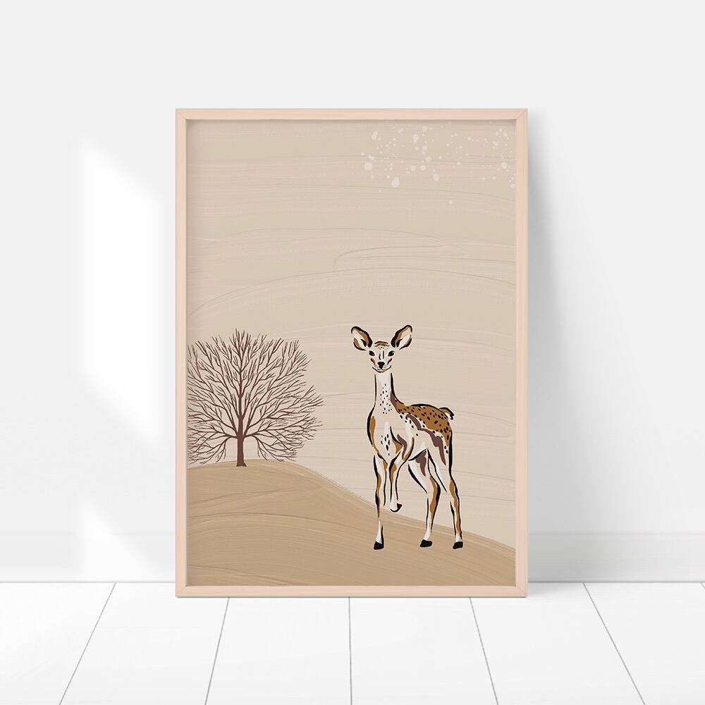 ポスター 鹿 / i0987 / 野生の動物たち ベージュやグレージュ調のペイント画 インテリアポスター