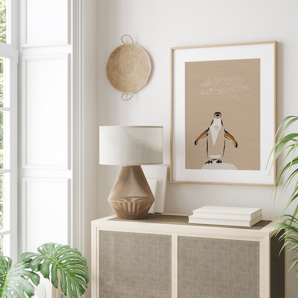 ポスター ペンギン / i0980 / 野生の動物たち ベージュやグレージュ調のペイント画 インテリアポスター