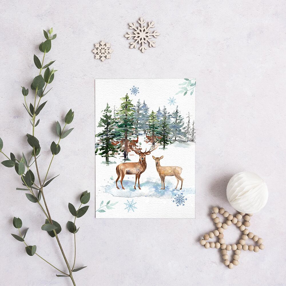 ポスター 森の冬景色 鹿のつがい / i0361 / 冬の森 雪景色が広がる風景 森や山 湖にたたずむ動物