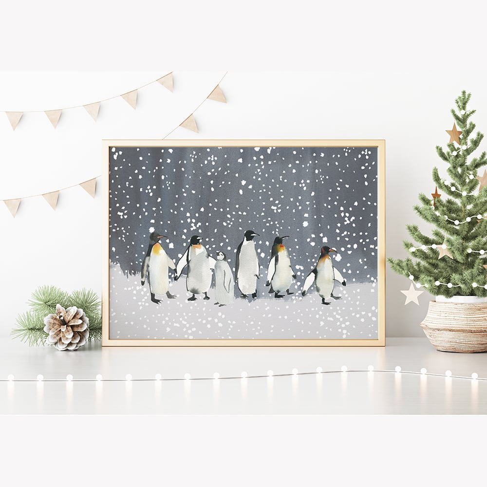 ポスター ペンギンたち / i0891 / 冬の夜 家や賑わう人々 森やオーロラなどの冬景色 インテリアポスター