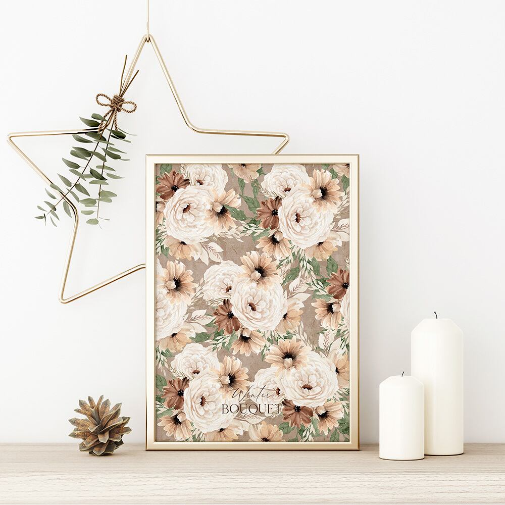 ポスター 花模様 / i0367 / ベージュやブラウン、白を基調としたブーケやリース インテリアポスター