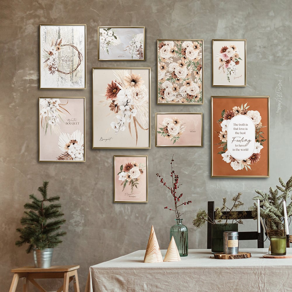 ポスター 冬の花束 / i0888 / ベージュやブラウン、白を基調としたブーケやリース インテリアポスターさ