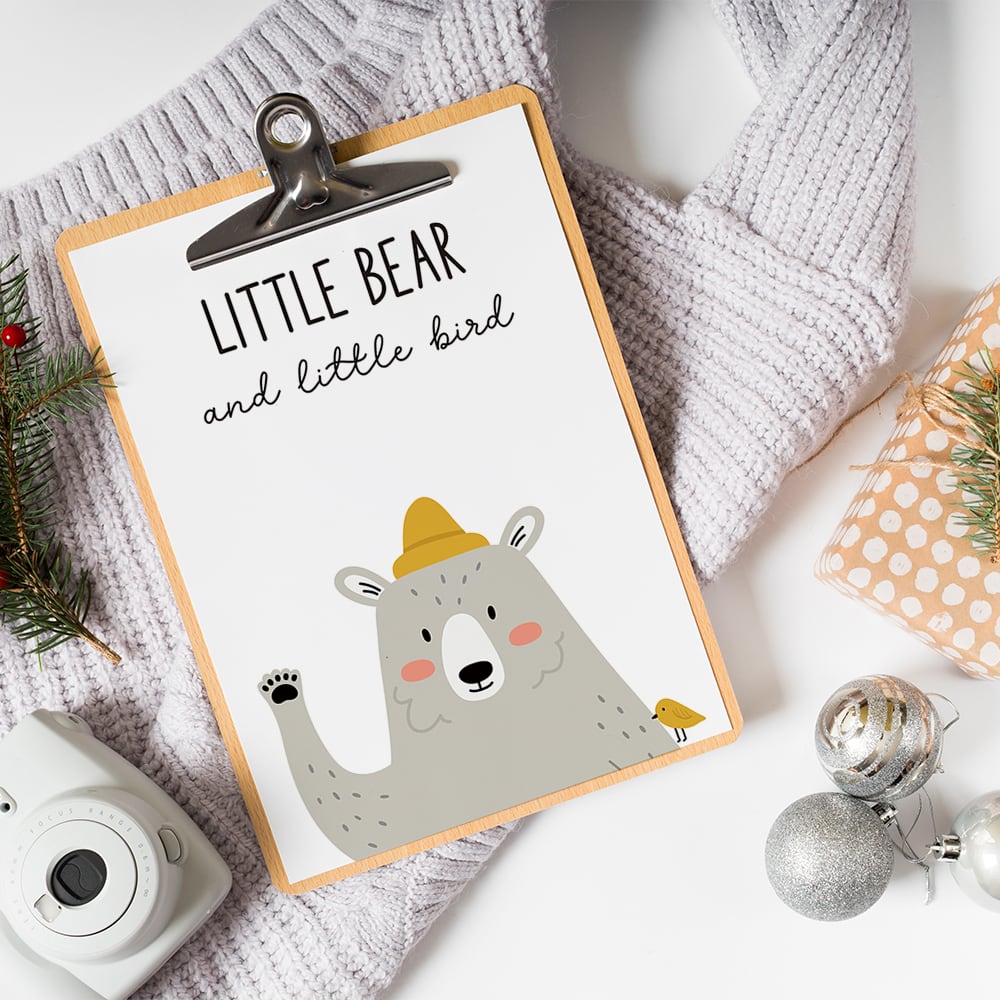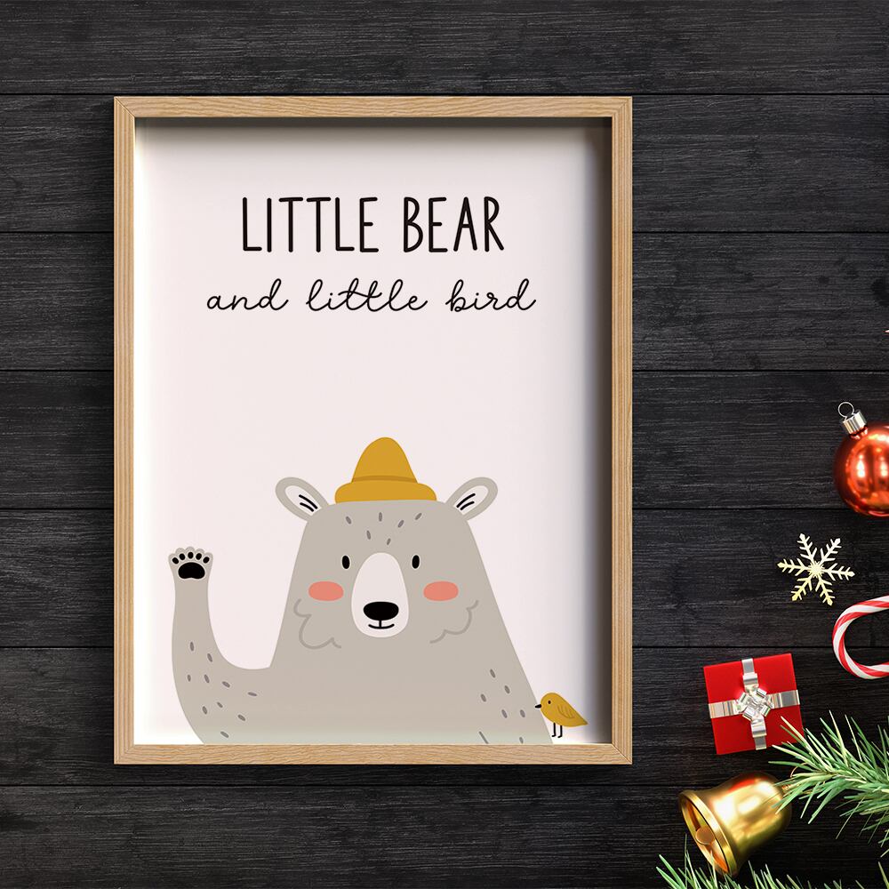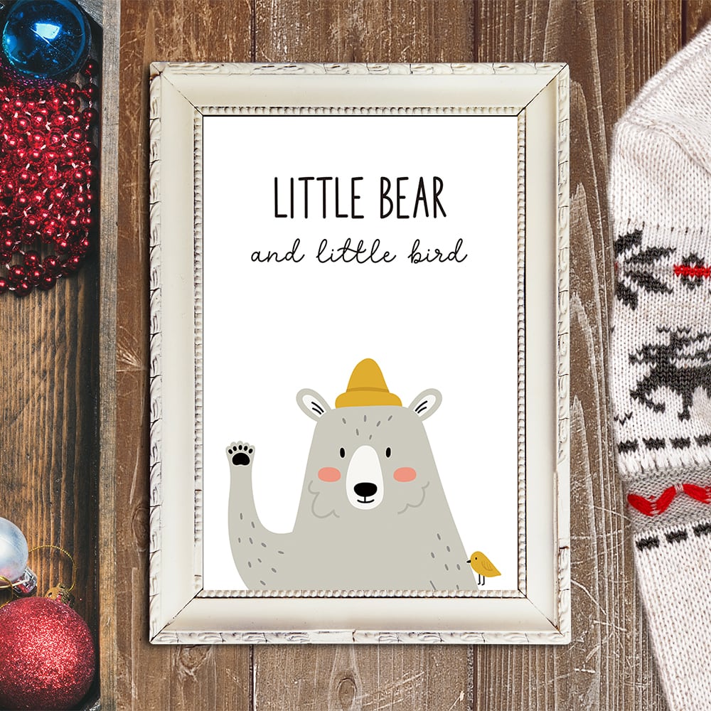 北欧ポスター シロクマの挨拶 / i0428 / キツネや小鳥と一緒にリラックス 子供部屋 インテリアポスター