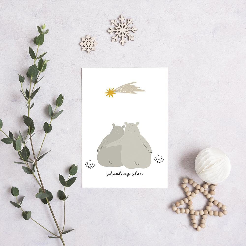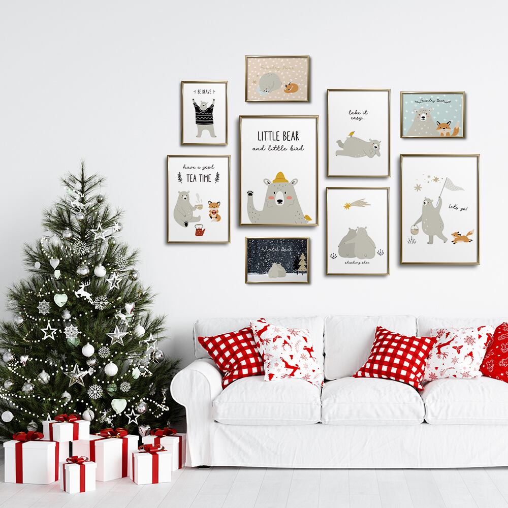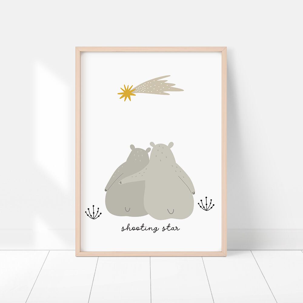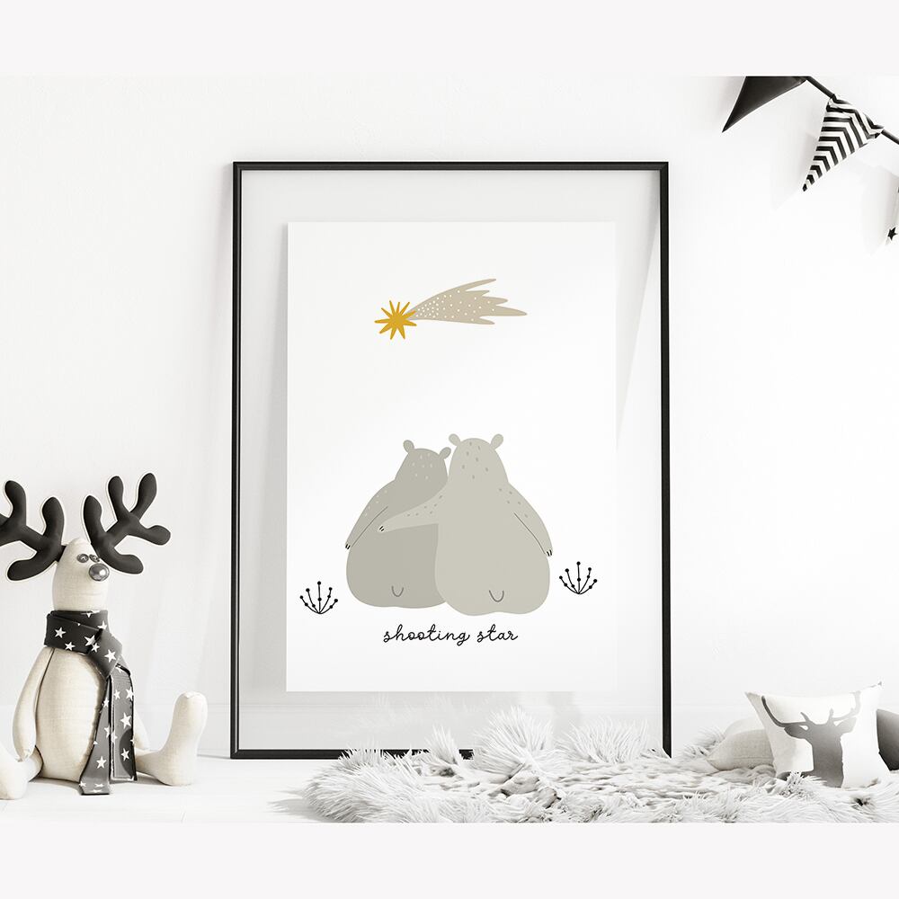 北欧ポスター 流れ星を見るシロクマ / i0431 / キツネや小鳥と一緒にリラックス 子供部屋 インテリアポスター